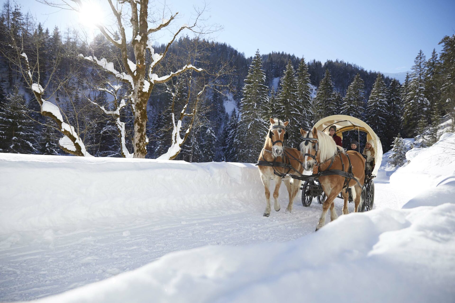 Eine Pferdekutschenfahrt durch verschneite, zauberschöne Winterlandschaften ist ein besonderes Erlebnis und komplettiert Euren Winterurlaub in Österreich. Ob als Auszeit zu zweit oder mit der ganzen Familie – so eine Fahrt durch Achenkirch bei strahlendem Sonnenschein und glitzerndem Schnee vergesst Ihr nicht so schnell – versprochen!