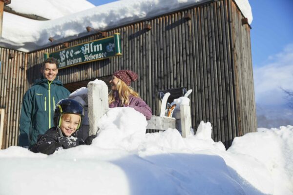 To warm up, head to our Seealm, which provides hungry winter sports enthusiasts with Tyrolean dishes and the best hut delicacies. Even more winter fun awaits you with tobogganing together or a beautiful horse-drawn carriage ride, where you can really enjoy the snow-covered mountain panorama.